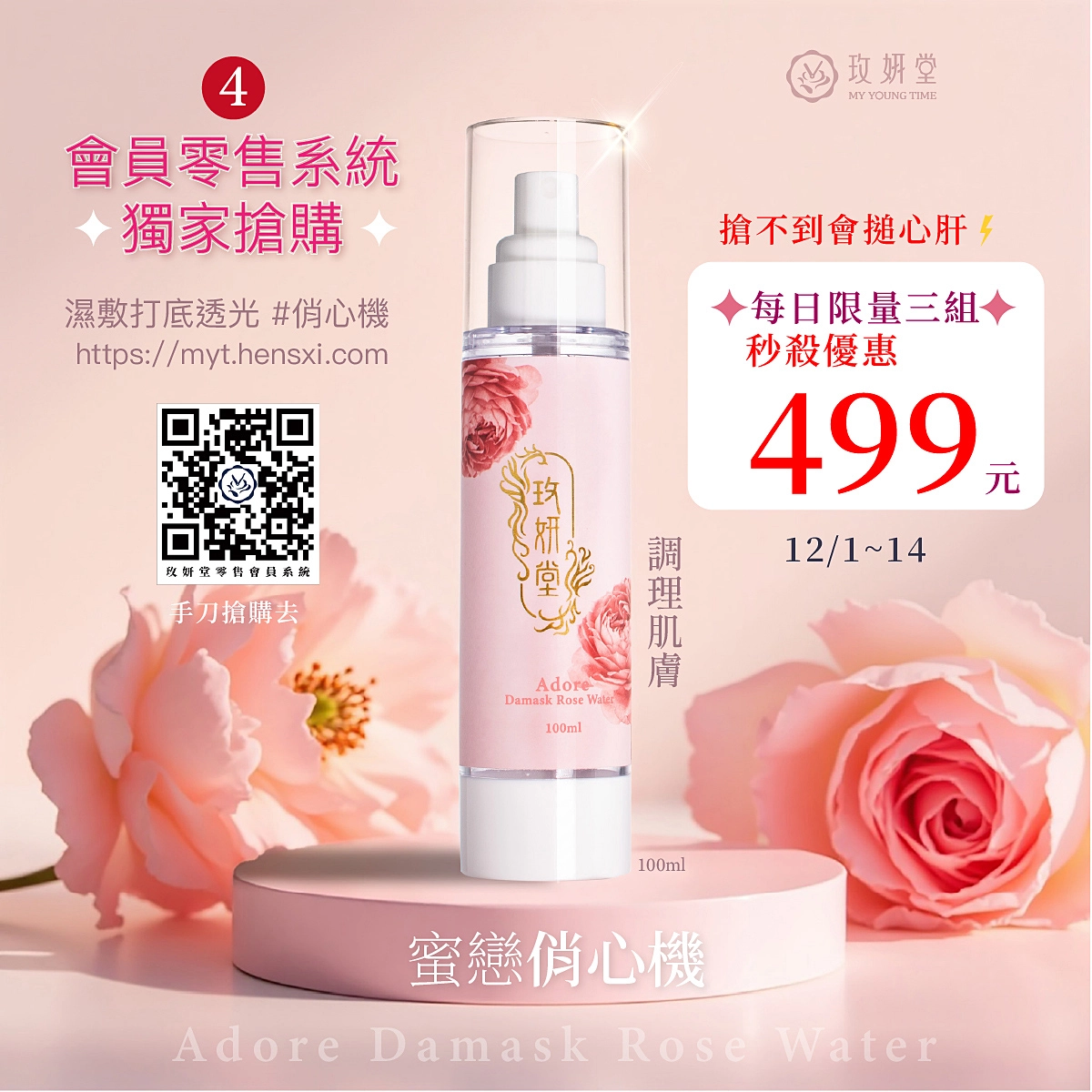 活動日期:2025/12 活動地點: 1.玫妍堂官方網站 2.玫妍堂零售會員系統 活動內容: 12/1-12/14 晶露+俏心機限時優惠組合1+1只要$1212 12/11-12/12 限時限量只要$299 12/1-12/14 會員系統俏心機限時搶購499 玫妍堂官方網站→點我前往$1212、點我前往$299 玫妍堂零售會員系統購買→點我前往