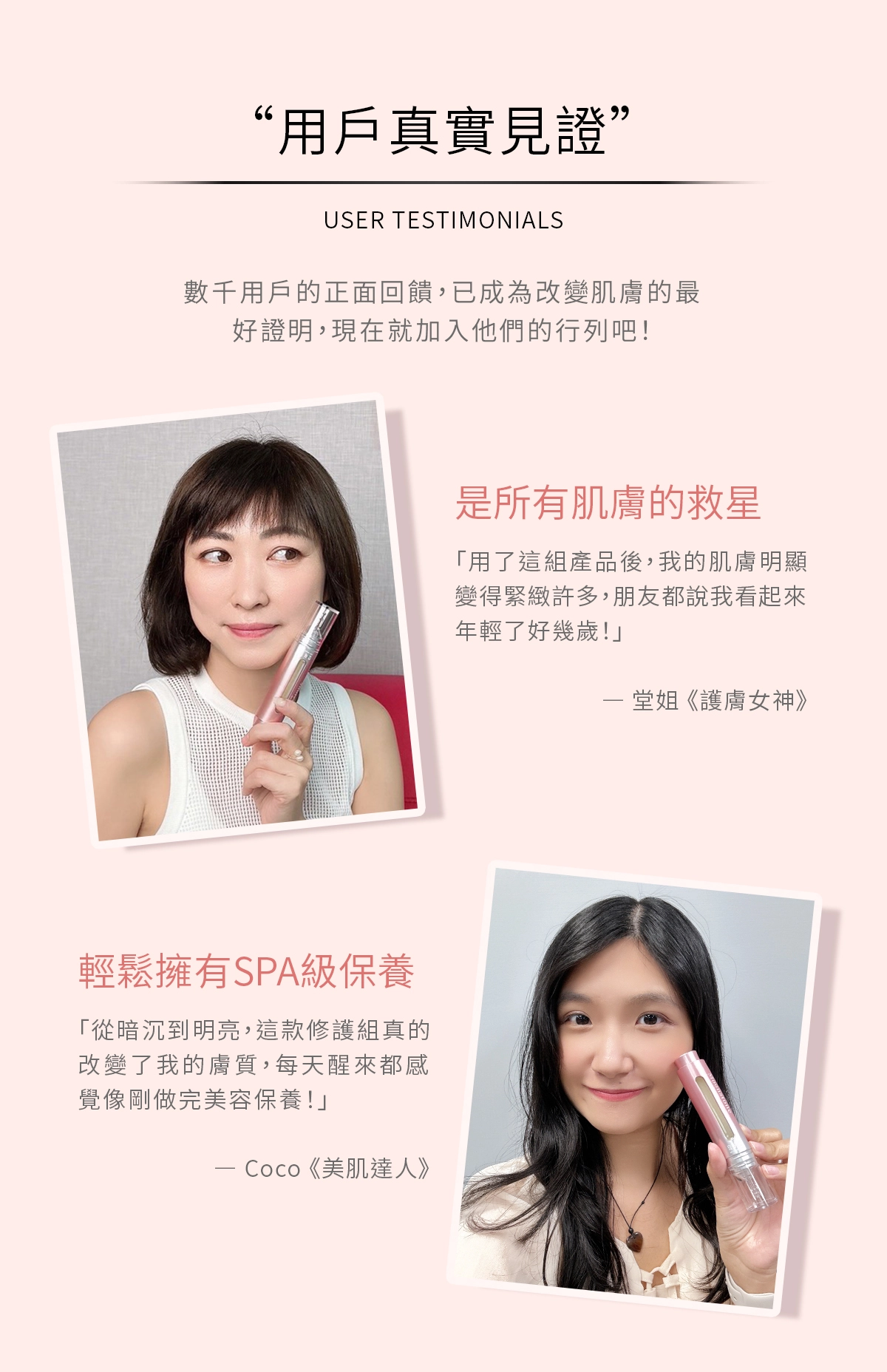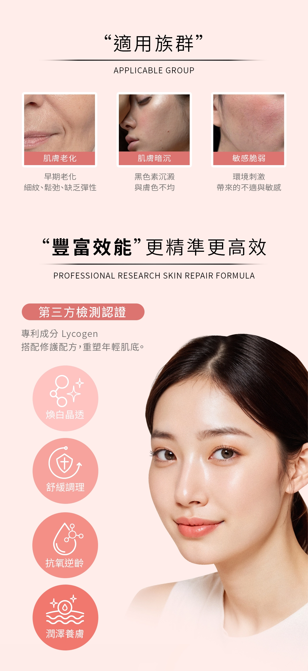 注意事項 | 外用保養品,因個人膚質不同,如有皮膚出現不適,或皮膚有紅、腫、熱、痛、癢等過敏反應,請停止使用,並立即以大量清水徹底沖洗及諮詢專業醫師建議。 |